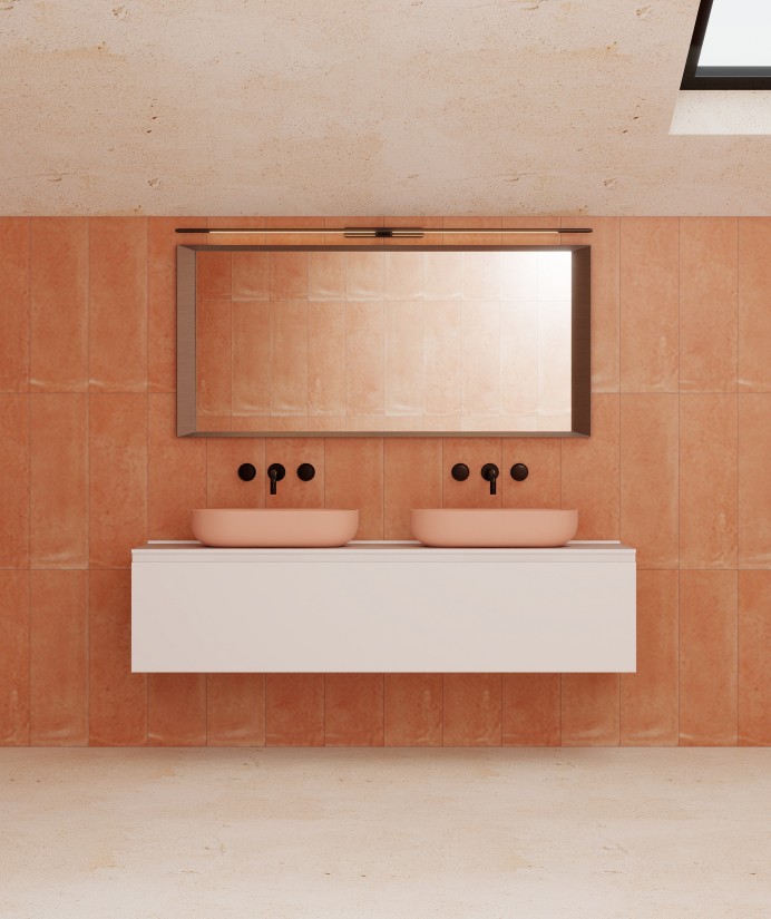 This solid surface bathroom cabinet features a suspended cabinet design. Crafted from dense, stain-resistant material, it offers exceptional durability and wear resistance. Available in multiple colors and customizable sizes to complement diverse styles. The sturdy cabinet structure and expertly executed suspended installation create a sense of lightness while ensuring reliable load-bearing capacity. Its wide layout accommodates dual-user scenarios, with versatile hardware compatibility. The mirror area can be expanded for additional storage. The seamless construction and meticulous detailing combine practicality with premium aesthetics, making it an excellent choice for spacious or dual-occupant bathrooms.