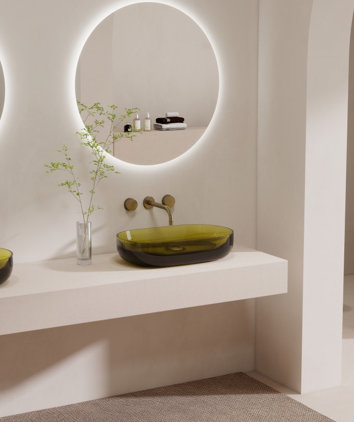 This transparent resin countertop basin features an elliptical streamlined silhouette with subtly curved edges that soften the harshness of rigid lines. Paired with vintage-inspired copper wall-mounted faucets and knobs, it strikes a balance between “modern minimalism” and “vintage luxury,” complementing diverse styles like wabi-sabi, contemporary minimalism, and soft retro to become the visual focal point of any bathroom setting. Resin material offers excellent wear and stain resistance, requiring only a soft cloth for daily cleaning. The basin's depth and inner wall curvature are ergonomically designed to minimize water splashing during use. Pairing with a matching metal drain further enhances the cohesive design integrity, unifying functionality and aesthetics.