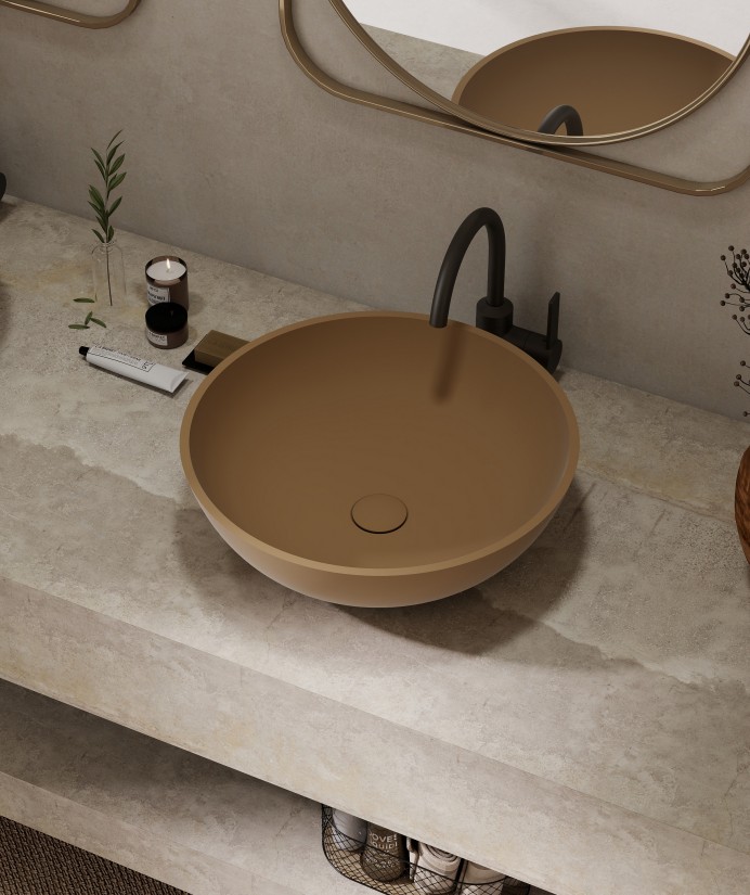 This countertop basin is crafted from high-quality solid surface, featuring a refined matte finish that feels smooth to the touch while offering exceptional durability and stain resistance for easy cleaning and maintenance. Its seamless, one-piece construction ensures fluid lines without visible joints, showcasing exquisite craftsmanship. The rounded silhouette delivers a minimalist yet sophisticated aesthetic, softening the harshness of bathroom spaces and creating a gentle ambiance. Exuding an inherent sense of sophistication, it effortlessly complements modern, minimalist luxury, wabi-sabi, and other bathroom design styles, becoming a visual focal point within the space.
