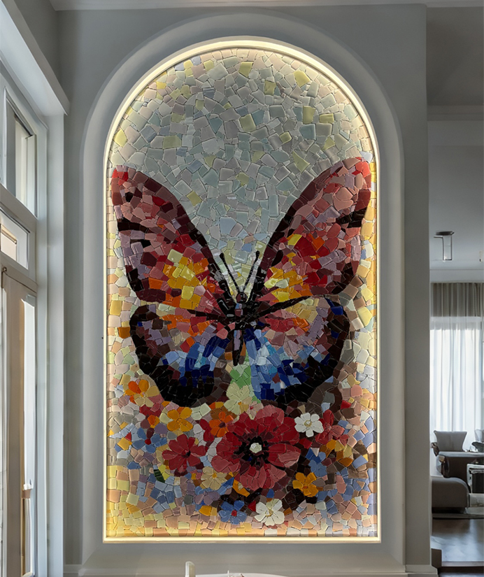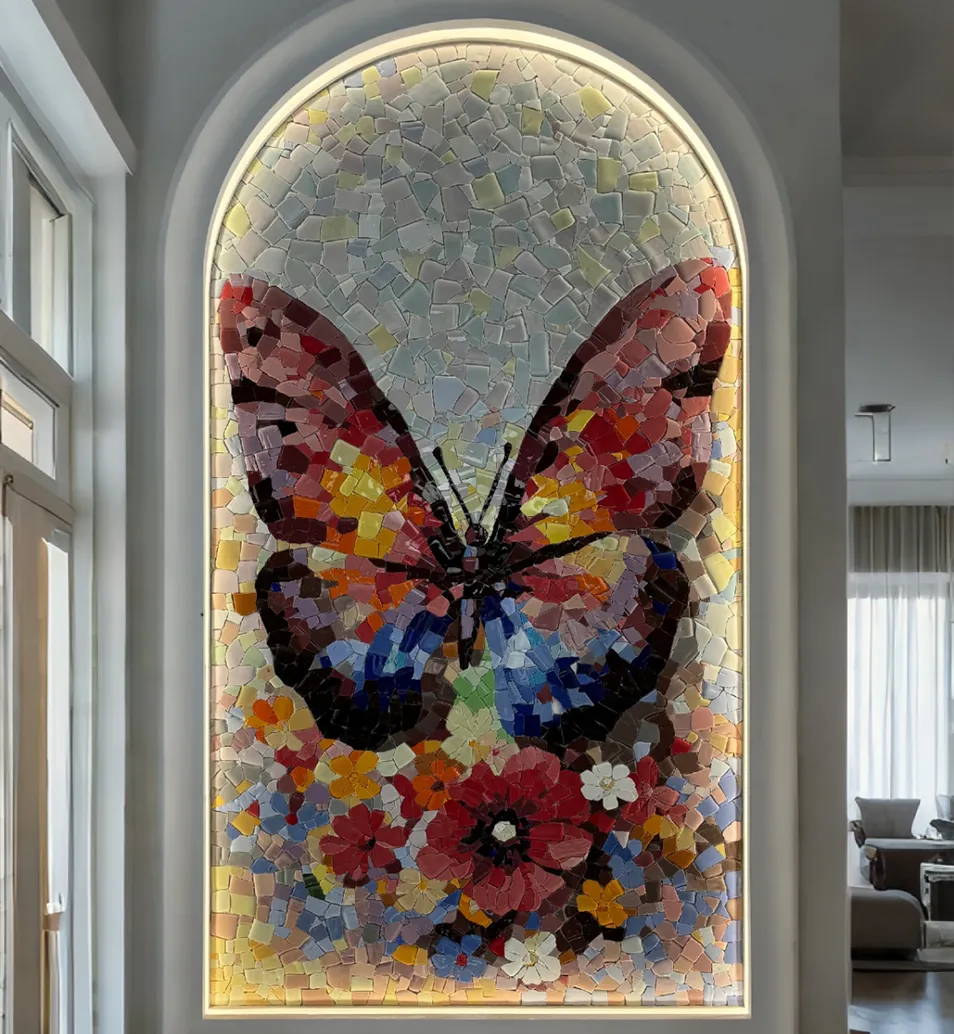 Partially transparent or translucent mosaic tiles create shifting visual effects as light angles change. Under natural light, refracted rays produce dynamic light-and-shadow fluctuations, transforming static mosaics into visually animated works.