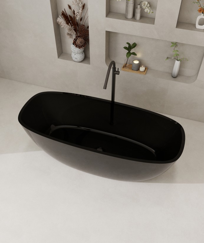 The transparent resin lends this bathtub a translucent quality reminiscent of glass. The material's inherent warmth intertwines with light refraction to create unique visual depth, while its surface offers the distinctive smooth texture characteristic of resin—combining durability with artistic appeal. Featuring a minimalist, streamlined oval design, this freestanding tub avoids redundant lines, making it adaptable to diverse spatial styles. Its standalone layout positions it as a visual focal point within any space. Whether integrated into a setting or displayed independently, its pure form conveys the sophisticated elegance of minimalism. Its design transcends the boundaries between functionality and artistry. The malleability of transparent resin allows it to embody diverse design expressions—serving as a textured piece in wabi-sabi aesthetics or an artistic accent in light luxury spaces. While fulfilling its bathing function, the bathtub infuses the bathroom with an artistic atmosphere through its translucent material and pure form, elevating it from a utilitarian fixture to a spatial artwork.